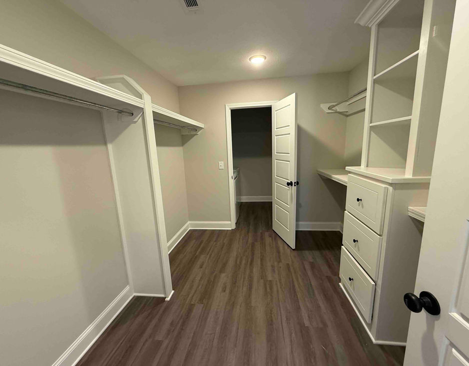 The kitchen is equipped with stainless steel appliances, including a REFRIGERATOR, custom white cabinetry, and a spacious pantry. A convenient mudroom includes a WASHER and DRYER, making laundry a breeze. The open living area features a cozy fireplace, and the home also includes a two-car garage for added storage and convenience.